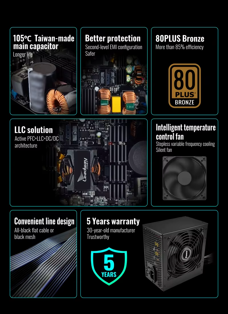 Fuente de Poder Certificada 80 Plus Bronze 500w Marca Meiji